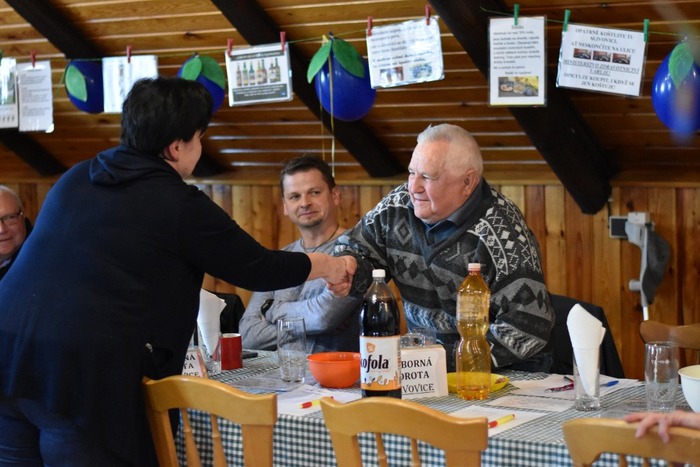 K příjemné atmosféře celého průběhu letošního koštu přispěl i pan Josef Hrbáček, který svojí hrou na harmoniku a dobrou náladou rozezpíval nejednoho účastníka.