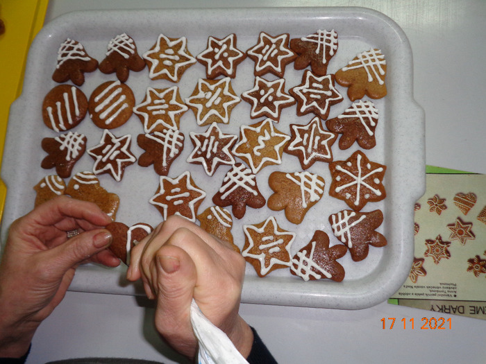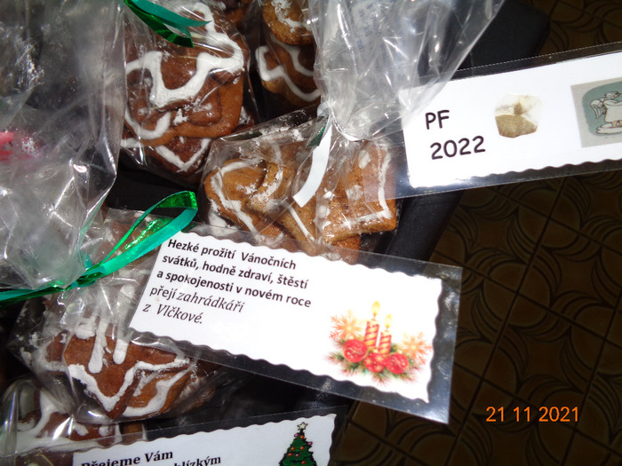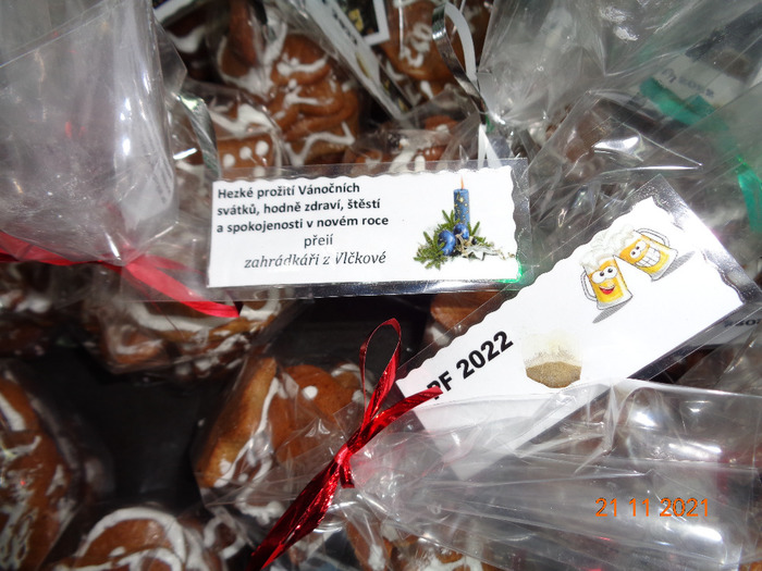 Několik členek ČZS ZO Vlčková si našlo čas na tradiční pečení perníčků, které se měly nabídnout občanům při slavnostním rozsvícení vánočního stromku u Obecního úřadu ve Vlčkové. Pečení začalo 15. 11. 2021 v budově ČZS, 17.11. se pak zdobily a 21.11. balily s vánočním přáním. Jelikož byl vyhlášen nouzový stav kvůli šíření coronaviru, akce byla v den rozsvícení stromku 28.11. zrušena. Proto výbor ČZS rozhodl, že balíčky s perníčky budou rozdány členům a jejich příznivcům.