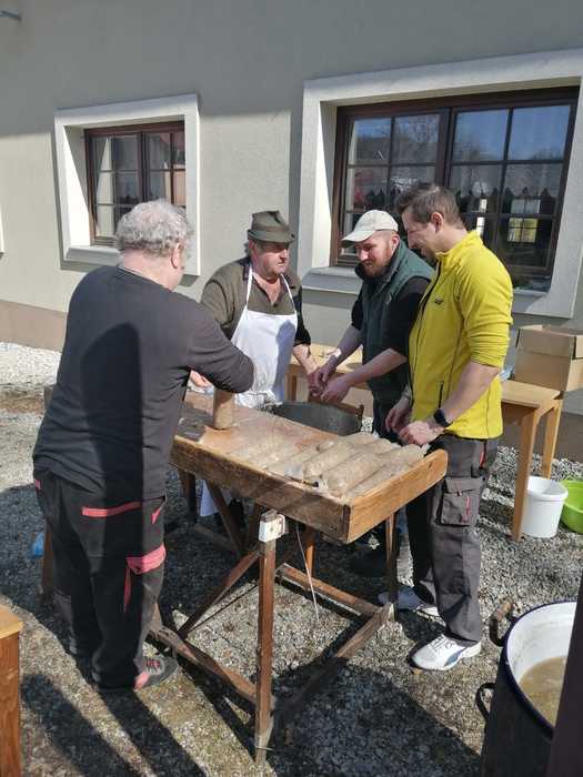 V sobotu 26. 3. 2022 vyvrcholily přípravy na vlčkovské vepřové hody, které se v tomto termínu uskutečňují už několik let - ale vzhledem ke kovidovým opatřením se už dva roky nekonaly! Nejen vůně zabijačkových dobrot lákala obyvatele Vlčkové v sobotním dopoledni k obecnímu úřadu - vepřové hody doprovázela i Mladá dechovka Kašava, která měla velký podíl na tom, že se i tentokrát vepřové hody pořádané obecním úřadem a dobrovolníky ve Vlčkové vyvedly. Díky patří všem - obzvláště pak mistru jelítek, prejtů a jitrnic - panu Miroslavu Kolářovi.